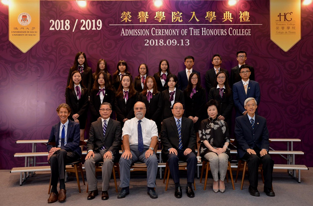 At the ceremony, UM Vice Rectors Lionel Ni, Rui Martins, and Kou Mei presented admission certificates to the students. In his speech, HC Dean Prof Mok Kai Meng noted that most graduates of the HC in the past seven years have found jobs at international companies such as Deloitte, Jardine Matheson etc… or pursued further education at top universities in the world such as University of Oxford, University of Cambridge, etc…. The seventh graduates in Jun 2018 have been employed by the well-known companies or organizations such as Bank of China (Macau), PricewaterhouseCoopers (Macau), KPMG (Macau), Deloitte Touche Tohmatsu (Macau), Tencent (Shenzhen), Sacred Heart Canossian College English Section, MIL Law Office, China Construction Engineering (Macau) Company Limited, Sheraton Grand Macao Hotel, MGM Macau, etc… or admitted by top universities in the world such as Columbia University, University of Michigan, The University of Queensland, University of Manchester, University of Edinburgh, The Chinese University of Hong Kong, etc…. Moreover, one graduate has been admitted by INSEAD which is ranked among the best business schools in the world and will pursue the PhD study directly with the full funding scholarships.
